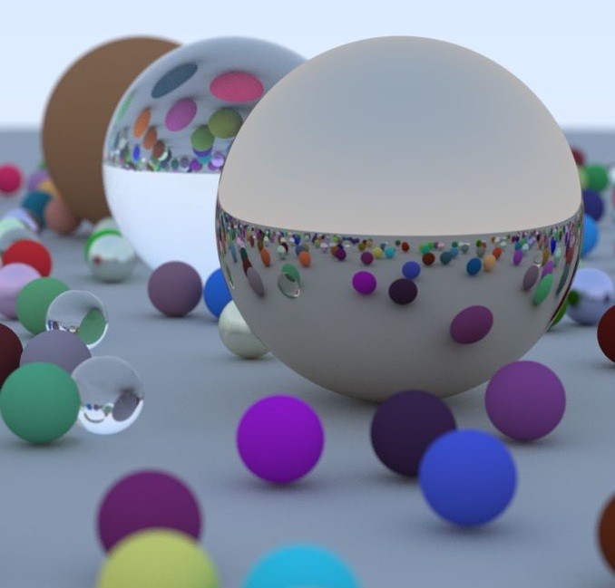 Early in this project I stumbled upon Ray Tracing in One Weekend by Peter Shirley, Trevor David Black, and Steve Hollasch - a site which explores ray-tracing in C++ and does so much more thoroughly than I have done. Mostly I chose not to "cheat" by reviewing the site while working on my own project, but I did take inspiration from one aspect - the authors' approach of using randomly generated rays to simulate depth of field, a much more efficient approach than what I had originally planned to do. Also, ultimately, I plan to follow the authors' example and introduce the PPM graphics format in this site.